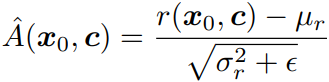 Advantage function: 보상을 정규화. 우리의 훈련 세트가 매우 크기 때문에 배치 별로 수행한다.
