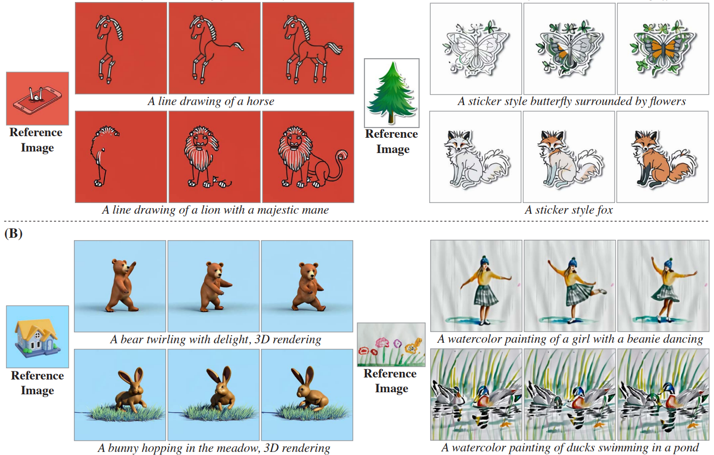 T2I 가중치를 고정했기 때문에 개인화된 T2I 가중치로 교체하면 원하는 스타일의 이미지를 생성할 수 있다. 하지만 이러한 "plug and play" 접근 방식이 정적인 비디오를 생성하거나 왜곡할 수 있으며, 이는 temporal layer의 입력 분포의 차이에서 발생한다.