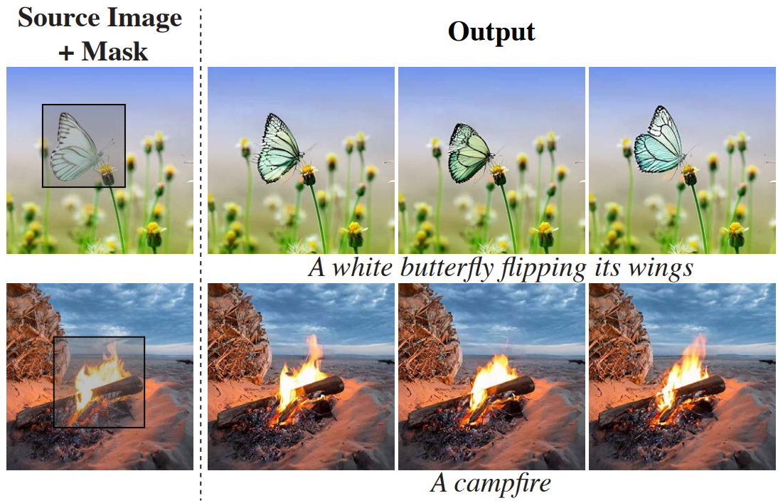 Masked conditioning video C와 binary mask M을 추가하여 T×H×W×3 → T×H×W×7로 확장(J, C, M)하고 첫 번째 conv layer의 채널 차원 또한 확장한다. 이렇게 하면 특정 부분에만 애니메이션을 적용하는 방법을 학습할 수 있다.