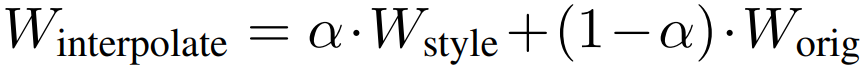 따라서 fine-tuned T2I 모델과 original T2I 모델의 가중치를 선형 보간한다.