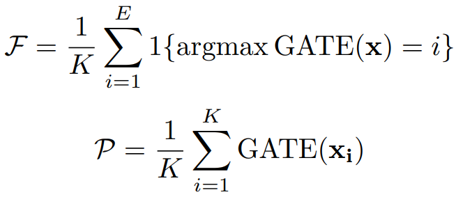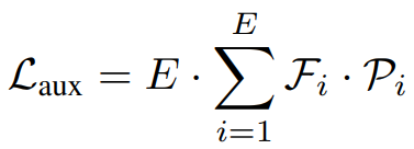 배치 내의 K개의 토큰 중 각 전문가가 처리한 토큰의 비율 F와 평균 라우팅 확률 P의 내적이다.