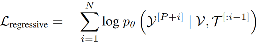 P개의 토큰을 순서대로 생성하는 일반적인 자기 회귀 목표.