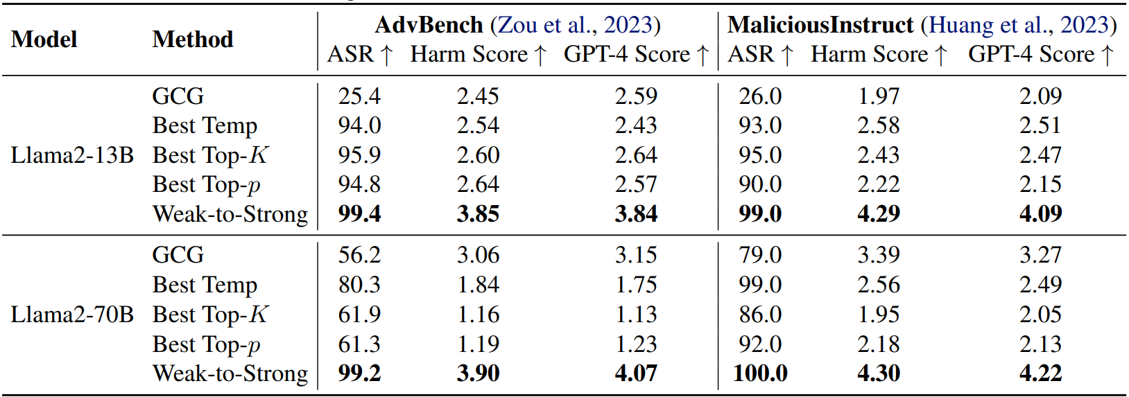 위와 같이 strong safe model의 출력 분포를 조정하여 유해한 응답을 생성하도록 할 수 있다.
