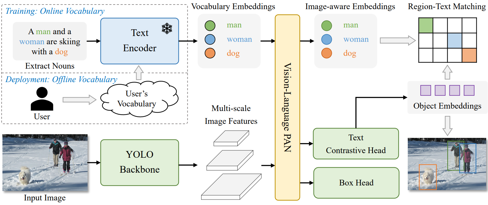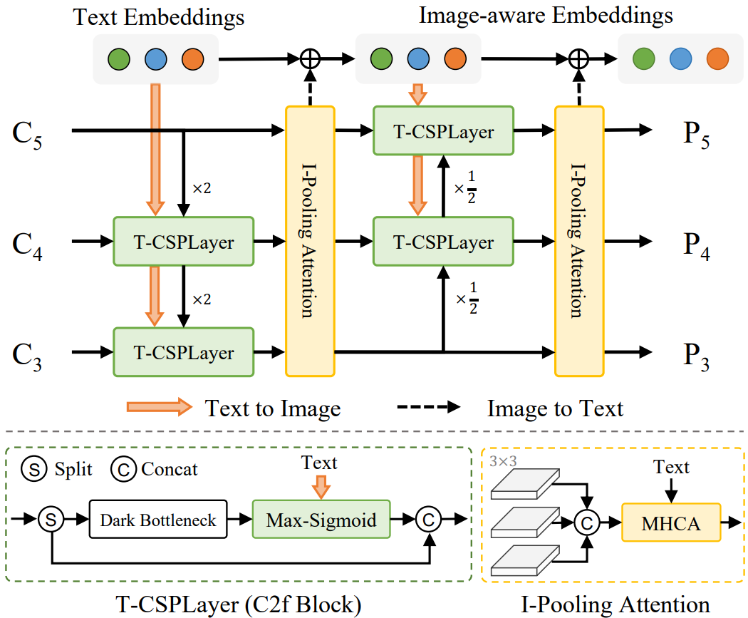 또한 text-image 상호작용을 위해 T-CSPLayer, I-Pooling attention 제안.