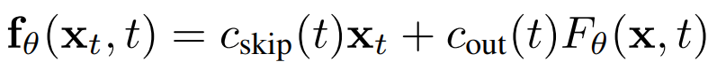 일반적으로 잔차 연결을 통해 consistency model을 피라미터화 한다.