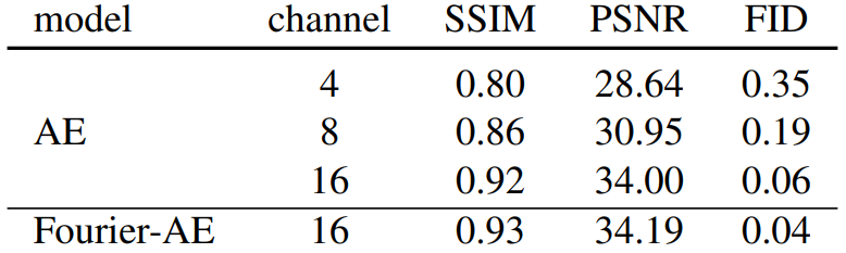 Latent Diffusion autoencoder의 채널을 확장하면 품질이 크게 향상된다. 또한 전처리로 fourier feature transformation을 적용하고 적대적 손실을 추가하면 더욱 향상된다.