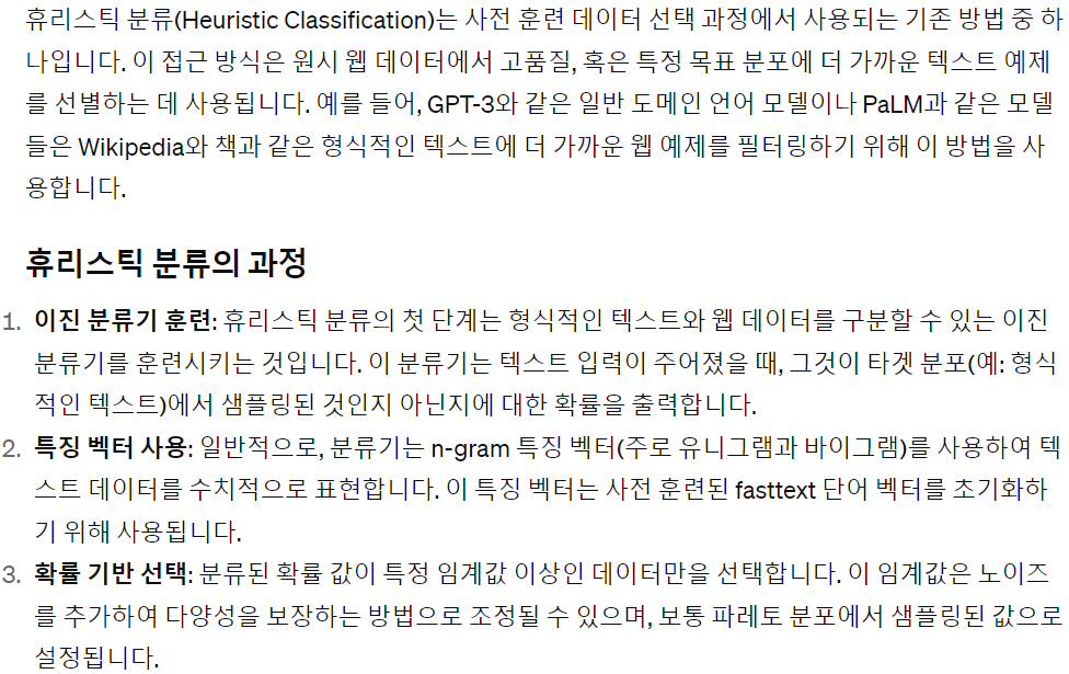 적절한 사전 훈련 데이터셋의 선택은 중요하다. 대규모 raw unlabeled dataset에서 원하는 target distribution에 맞는 데이터 부분 집합을 선택하기 위해 Data Selection with Importance Resampling (DSIR)을 제안한다.