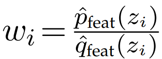 1. 각각의 분포에서 추출된 예제를 사용하여 raw distribution에 대한 추정치 q̂feat와 target distribution에 대한 추정치 p̂feat를 학습한다.