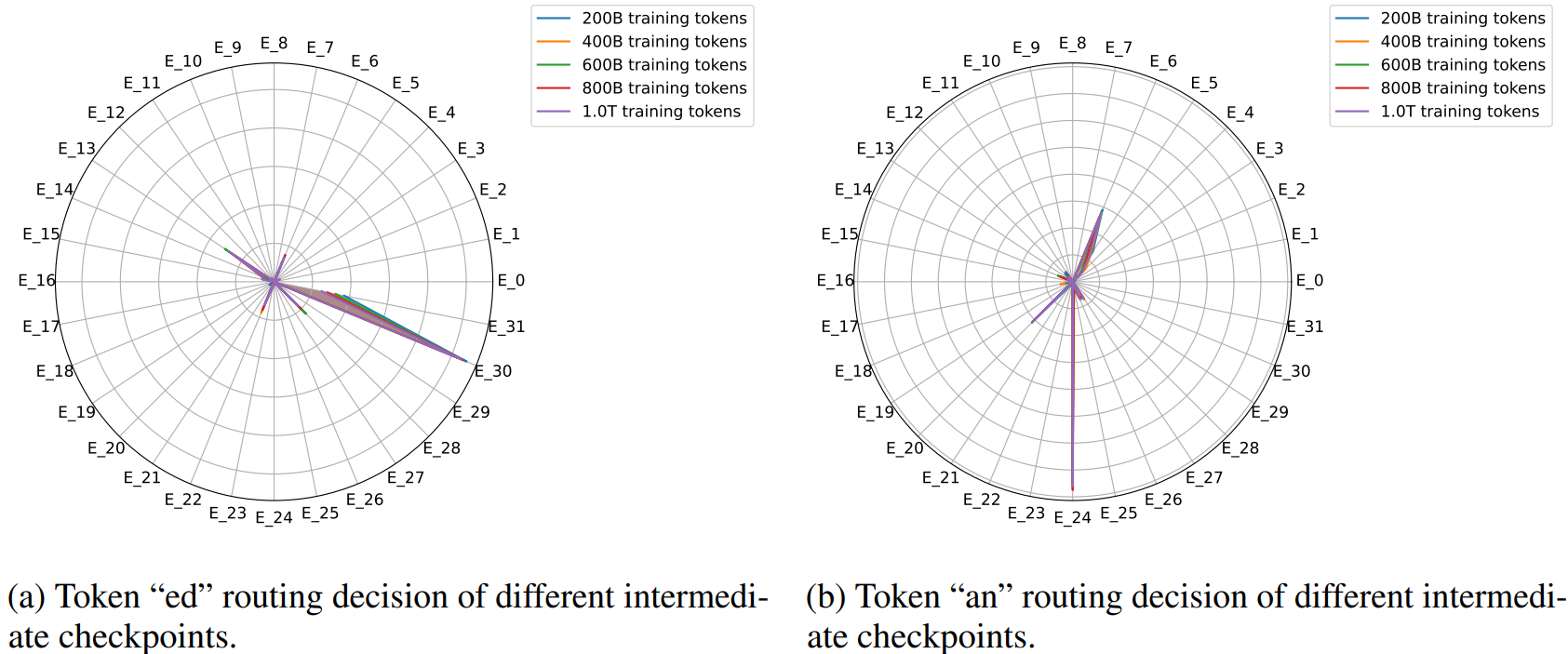 라우팅은 훈련 초기에 결정되는 것으로 보인다. 이후에는 거의 변하지 않는다.