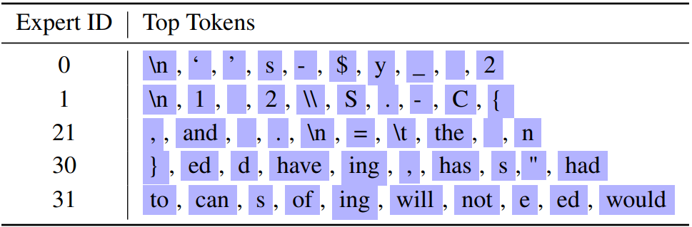 하지만 이는 시사점이 있는데, "an apple", "another" 두 상황에서 an은 다른 의미로 쓰였음에도 같은 전문가가 처리한다는 것이다. 의미보다 토큰 ID가 먼저이며, 따라서 저자는 이를 Context-independent Specialization 이라고 명명했다.