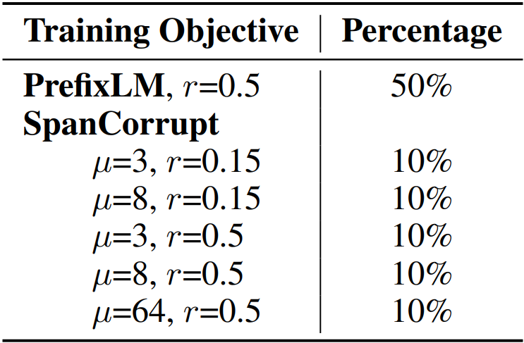 PrefixLM 목표와 현실의 코드 완성 작업과 유사한 UL2 목표를 혼합하여 사용한다.