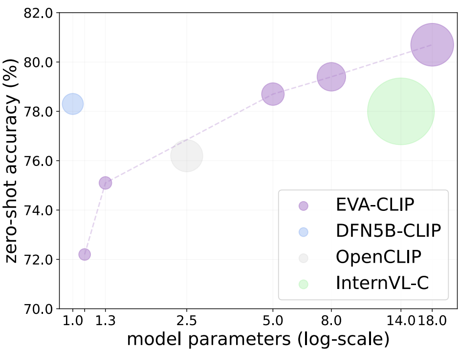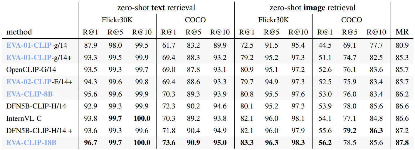 EVA-CLIP을 18B까지 확장.