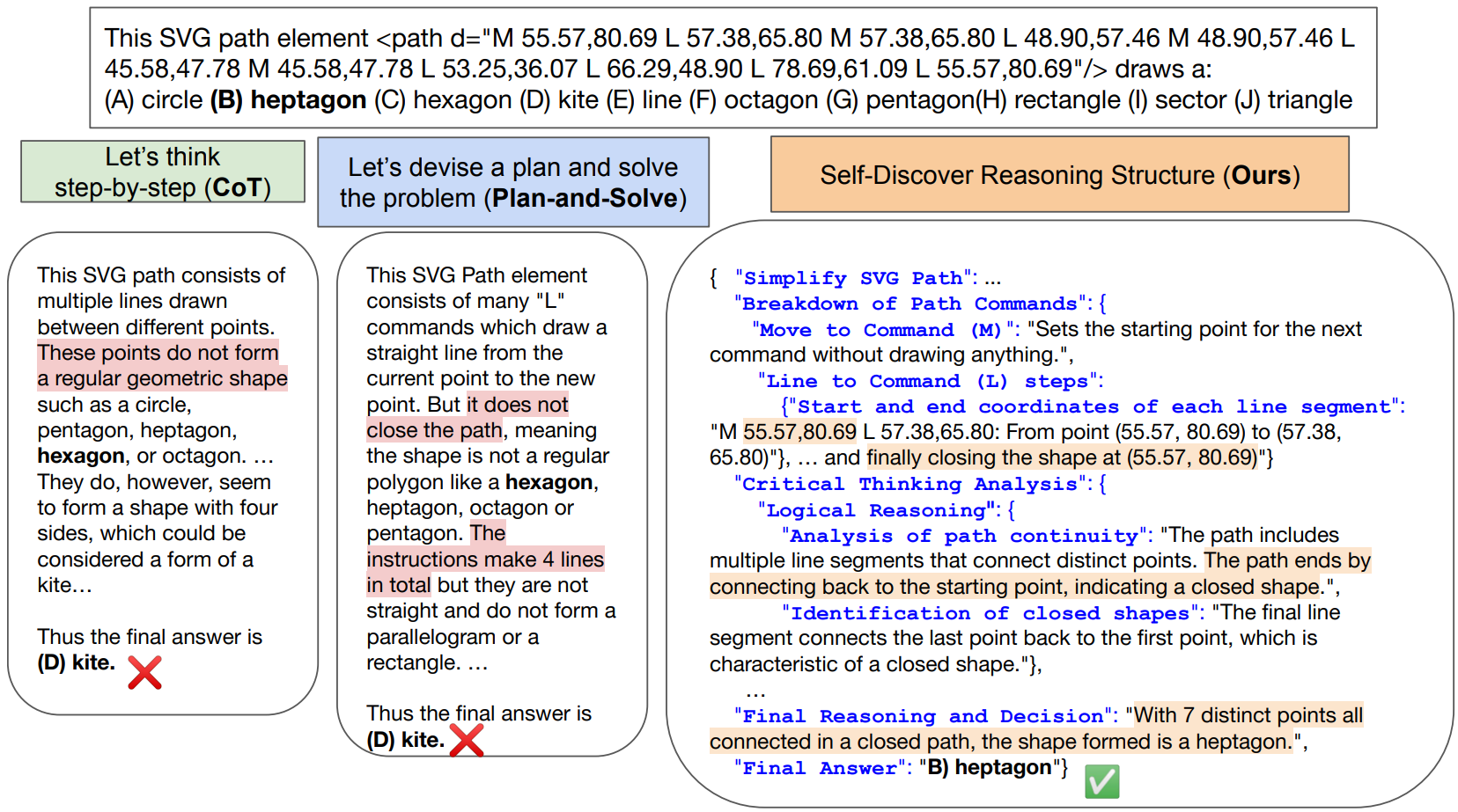 복잡한 추론 문제를 해결하기 위해 LLM이 작업 내재적 추론 구조를 스스로 발견하는 Self-Discover를 소개한다.