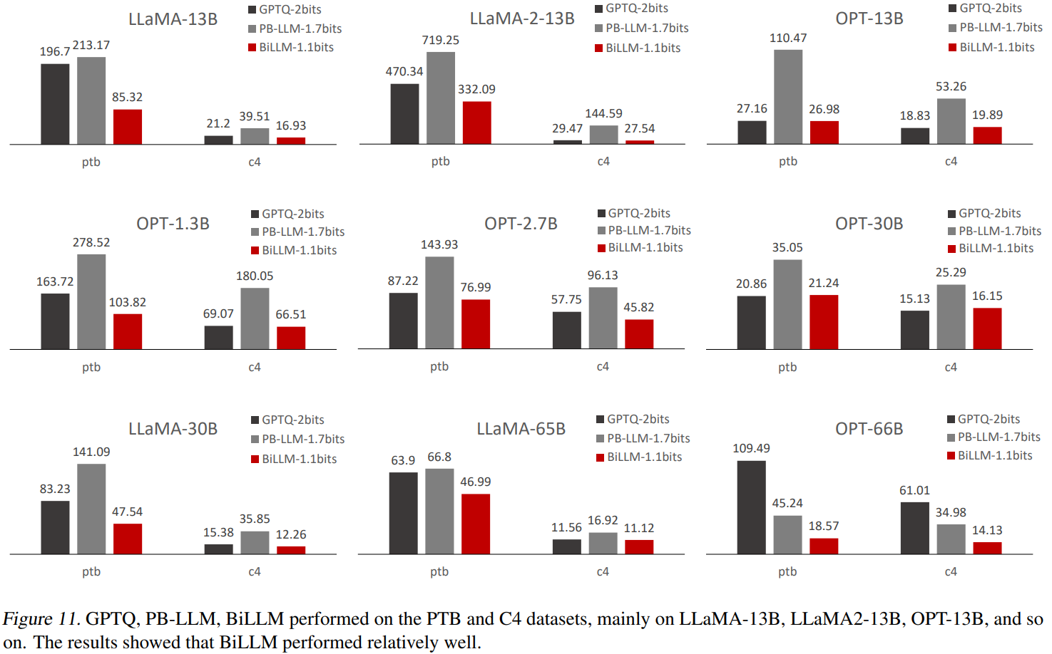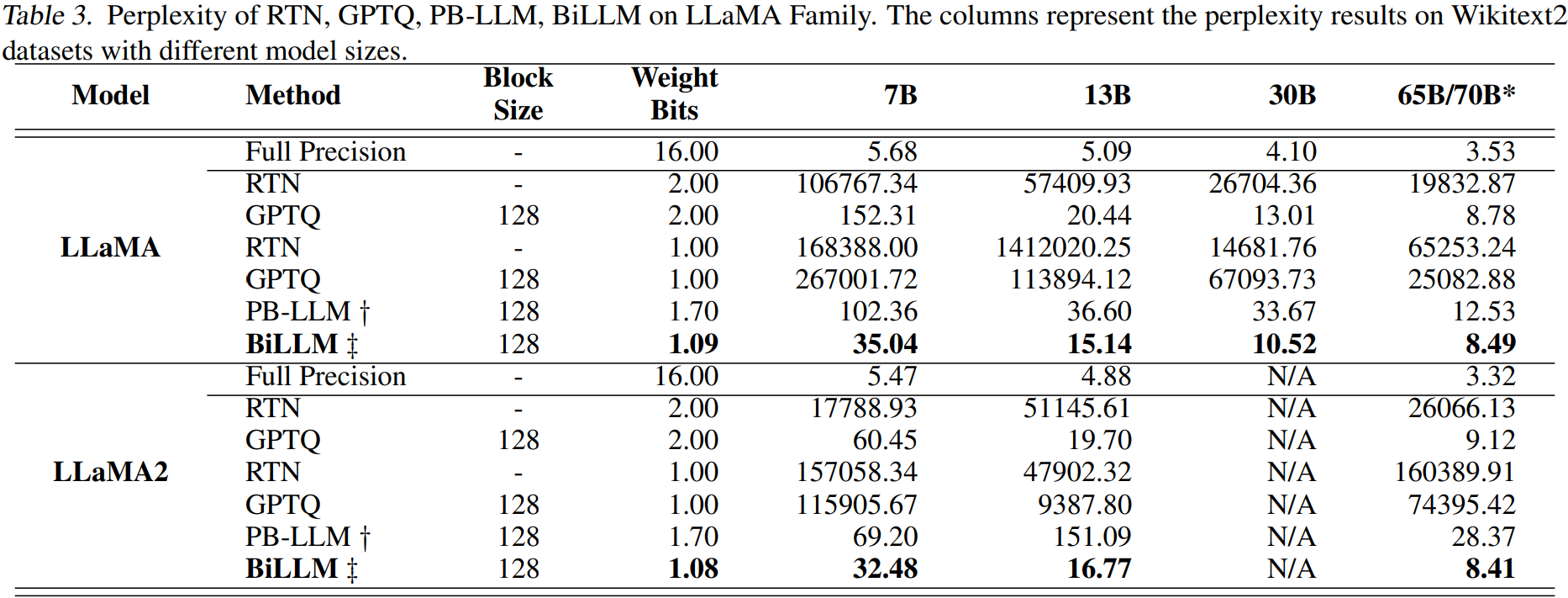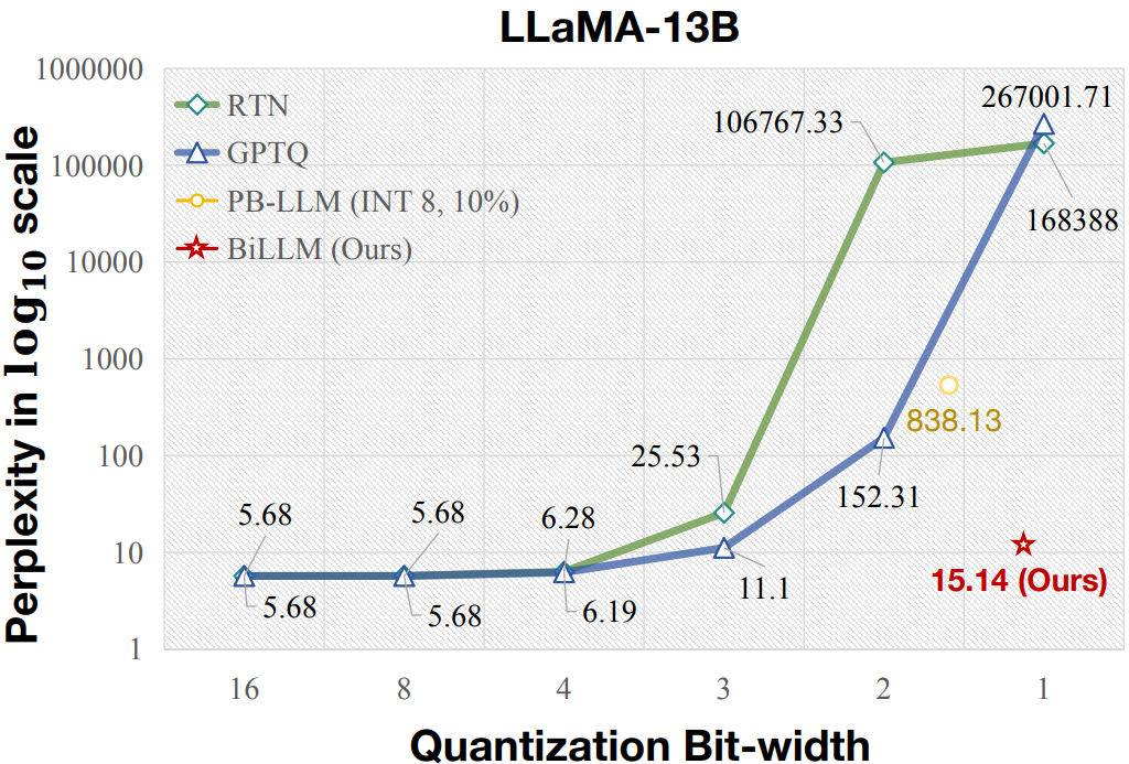 고정밀 추론이 가능한 1-bit post-training quantization (PTQ) 방식인 BiLLM 제안