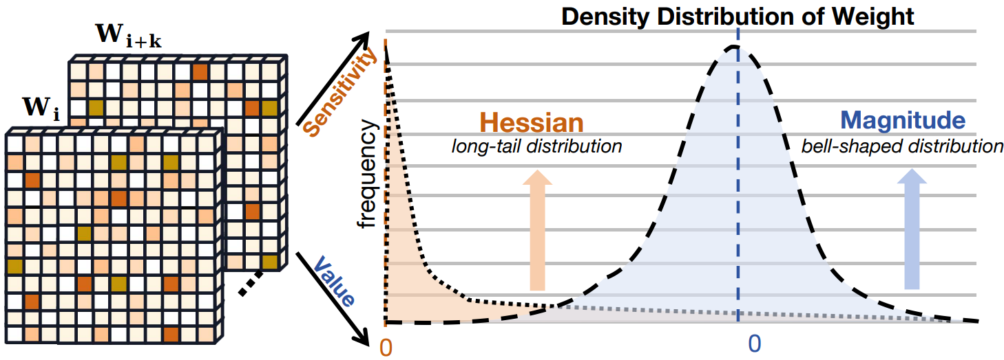 - 가중치의 Hessian matrix는 긴 꼬리 분포를 보인다.