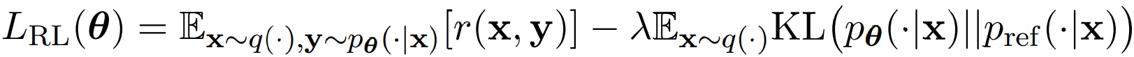보상 모델 r을 기준으로 보상을 최대화, 안정적인 훈련을 위해 KL regularization 추가.
