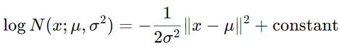 가우시안 분포의 로그 확률 밀도 함수는 다음과 같이 표현할 수 있고