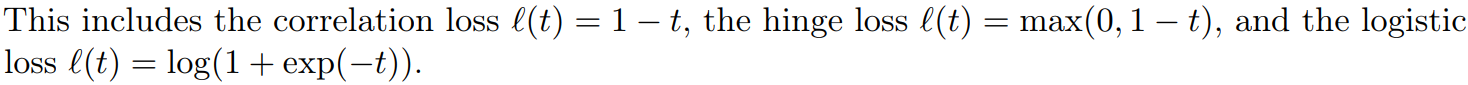 Function l은 convex function이면서 단조 감소하는 여러 가지 함수를 사용할 수 있다.