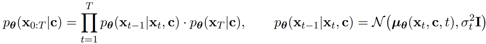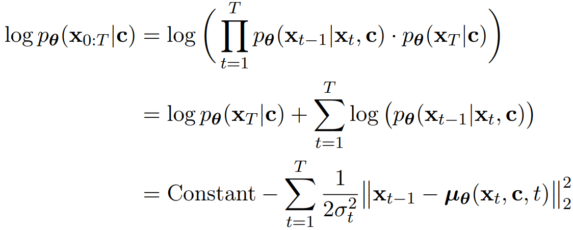 Timestep T에서의 분포는 조건 c와는 독립적인 분포이므로 최종적으로 다음과 같은 식을 도출할 수 있다.