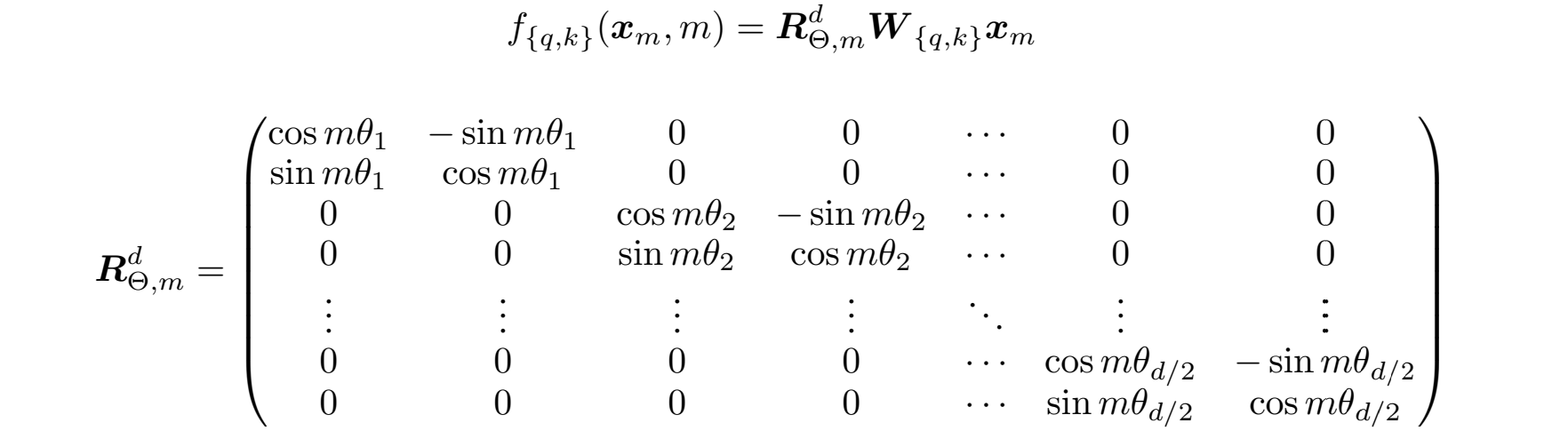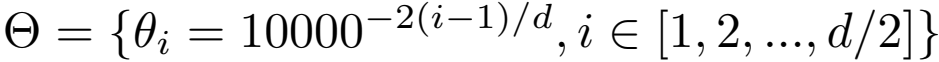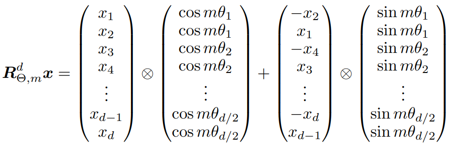 회전 행렬을 적용하기 위해 2개의 차원마다 다른 회전율을 사용한다. (낮은 차원일수록 높은 회전율, 높은 회전 주파수.)