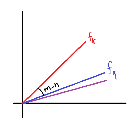 fq = fk 이더라도 위치의 차이(m-n)에 따라 내적의 결과가 크게 차이 나는 것을 보여준다.