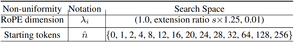 P개의 재조정 인자를 무작위로 초기화하는 대신 PI, NTK, YaRN에 해당하는 재조정 인자를 초기 인구에 추가하고 나머지 P-3 개체는 3가지의 각 재조정 인자를 무작위로 변이 시킨다.