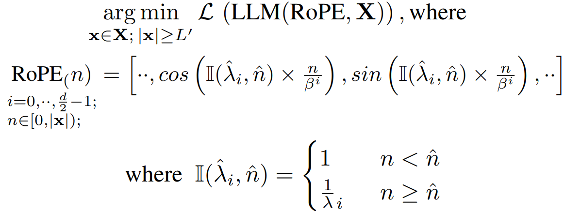 원래 context 길이 L에 대한 확장된 context 길이 L'의 비율 s를 정의한다. ( s = L'/L )