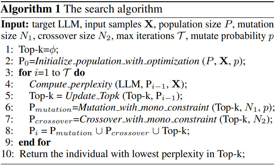 초기 인구에 대해 입력 X에 대한 perplexity를 계산하고 상위 k개의 개체를 선택한다.