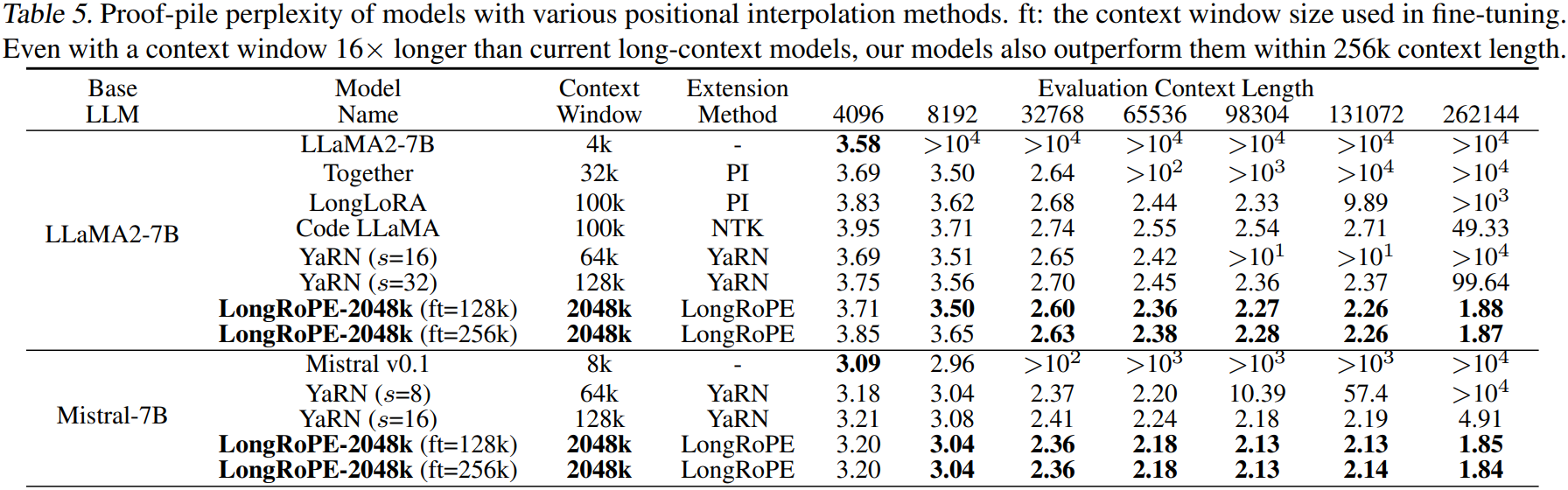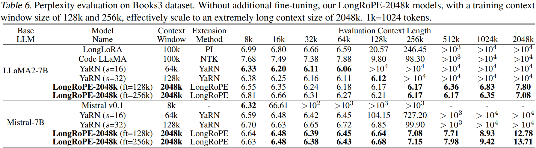 훈련 비용과 안정성 문제로 2048k에 대한 LLM fine-tuning은 수행하지 않는다.