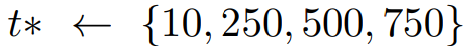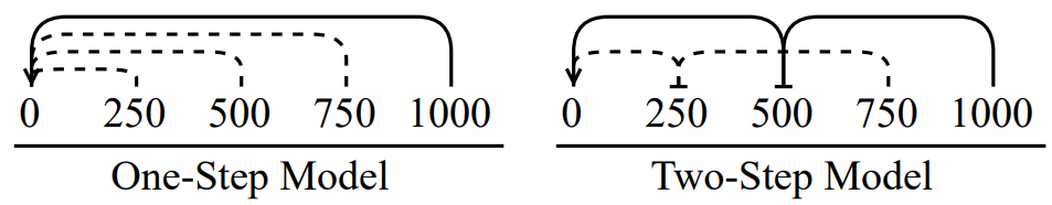 1000 → 0, 1000 → 500 → 0 만 학습하면 되지만, 안정성을 위해 더 많은 timestep에서 훈련한다.