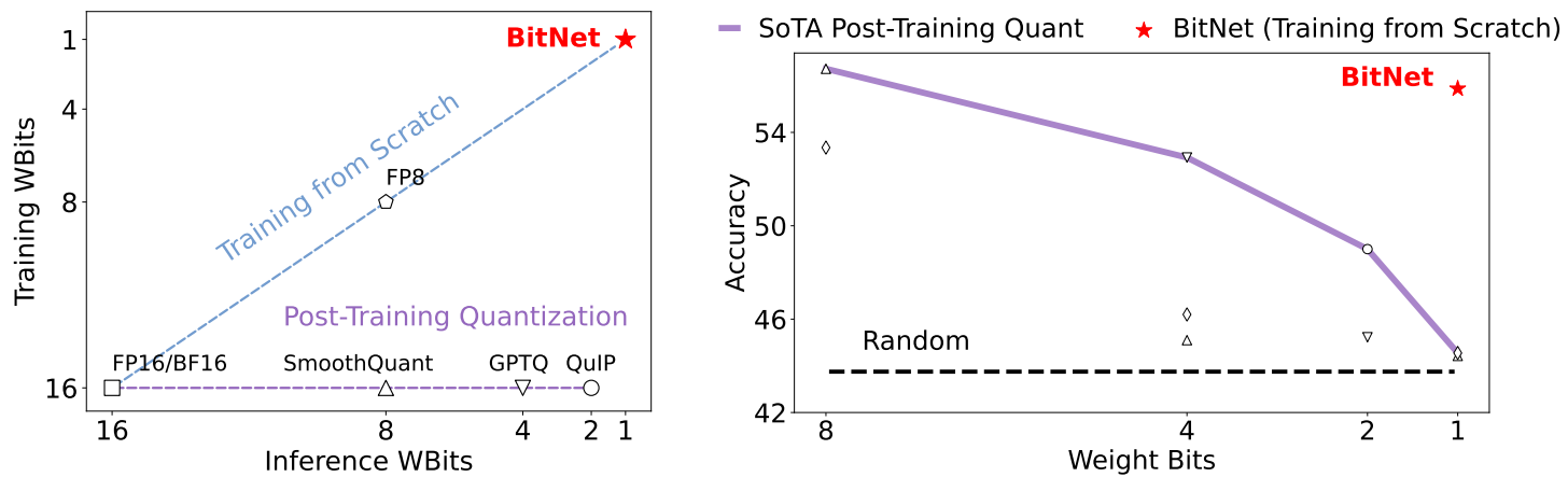 BitNet은 quantization aware training 모델이며, 훈련된 모델을 양자화하는 것은 불가능하다.