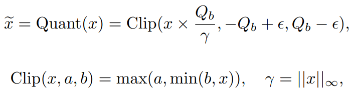 활성화 x는 최대 절댓값을 기준으로 하는 absmax 양자화를 통해 8-bit로 양자화.