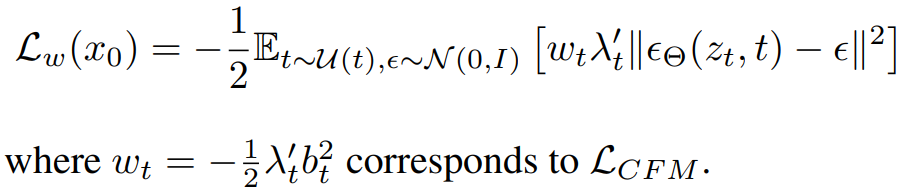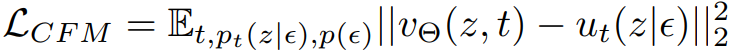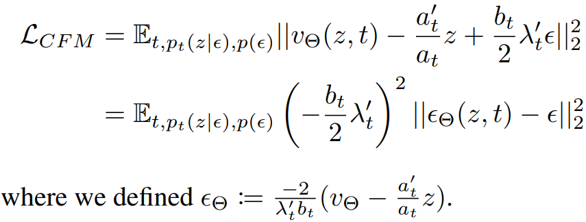 이를 CFM loss에 대입하고 ϵ으로 reparameterization 하면