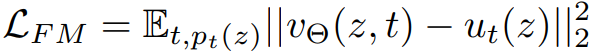 두 분포 간의 직선 방향을 네트워크 vΘ를 통해 직접 예측한다.