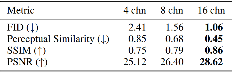 VAE의 잠재 채널 수를 늘리면 성능이 크게 향상된다.