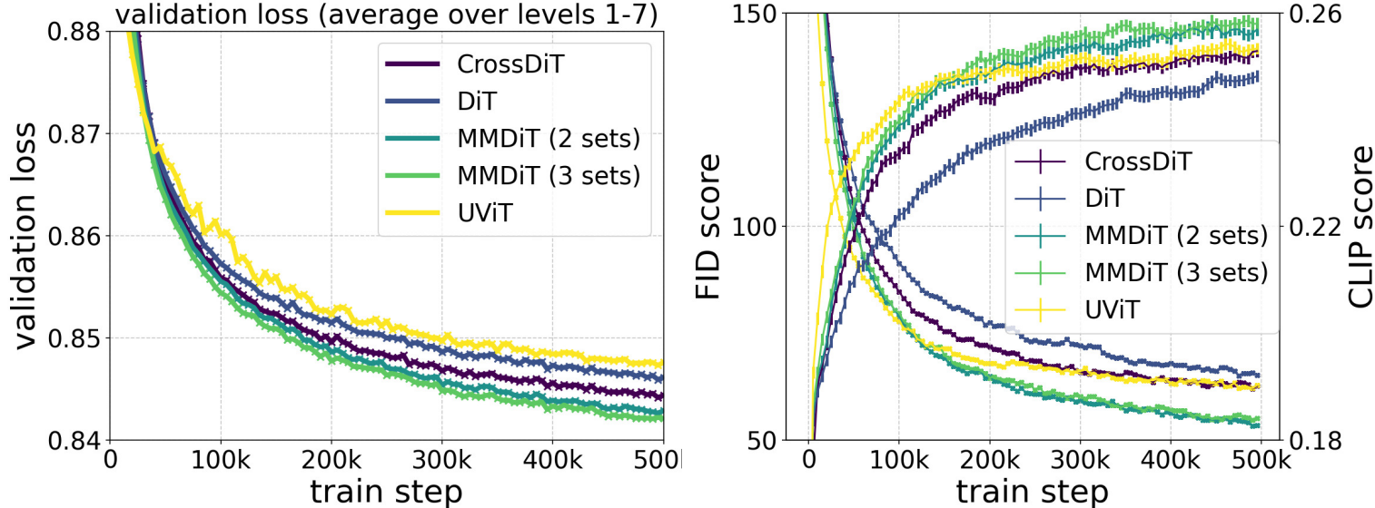 3 sets MMDiT는 추가되는 계산량에 비해 성능 이득이 크지 않으므로 채택하지 않았다.