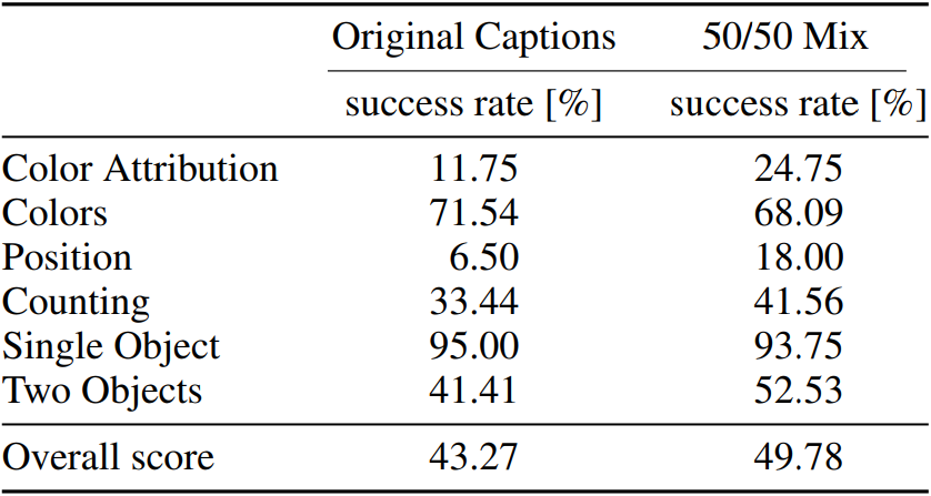 최첨단 MLLM인 CogVLM을 통해 생성된 캡션을 사용하며 해당 모델에 없는 개념을 잊지 않기 위해 원본 캡션을 1:1 비율로 사용.