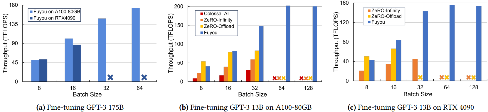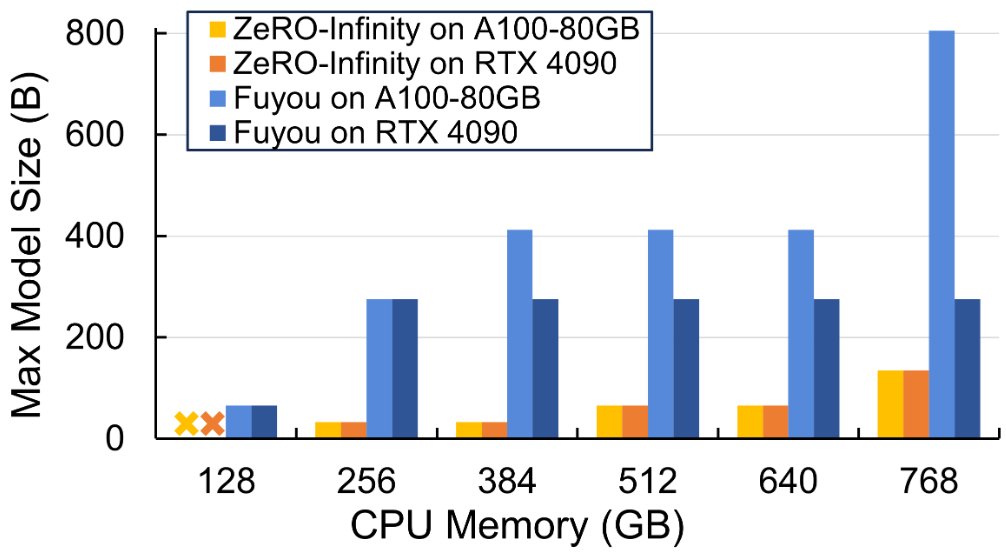 단일 GPU 상용 서버에서 대규모 모델을 fine-tuning 할 수 있도록 ZeRO-Infinity를 개선한 Fuyou 제안
