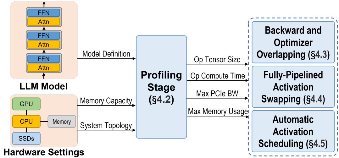 훈련 가능한 모델 크기를 손상시키지 않고 실행 전략을 효율적으로 구현하기 위해 프로파일링 단계에서 얻은 최고 GPU 메모리 활용률을 이용하여 나머지 메모리 공간을 FIFO 버퍼로 활용하는 FIFO prefetching mechanism을 제안한다.
