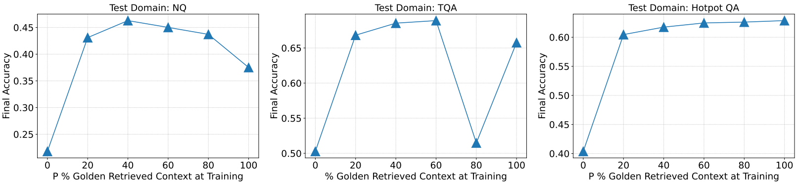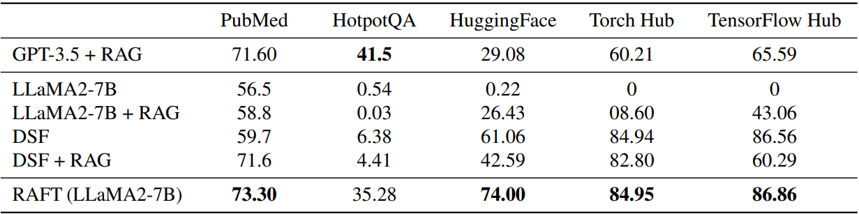 우리의 직관으로는 당연히 검색된 문서 중에 정답이 있어야 할 것 같지만 RAFT에서는 데이터셋에 따라 일부 그렇지 않은 상황이 있을 때 오히려 성능이 좋은 경우도 있었다.