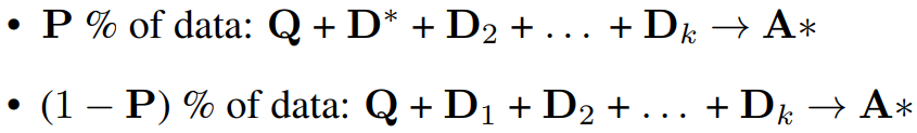 또한 (1 - P)의 확률로 D*을 제거하여 검색에 의존하지 않고 답변을 기억하도록 강제한다.