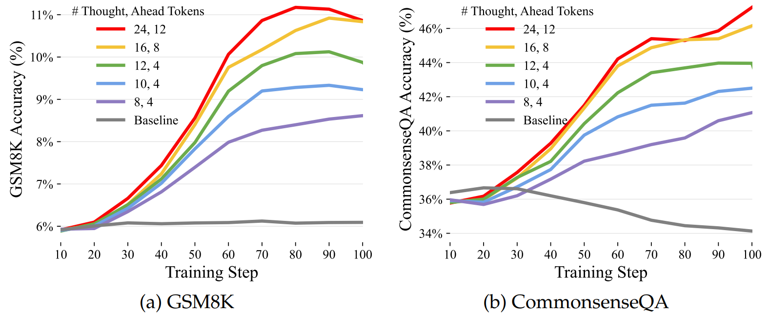 생각의 갯수와 생각 토큰 수에 대한 성능 향상
