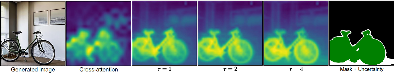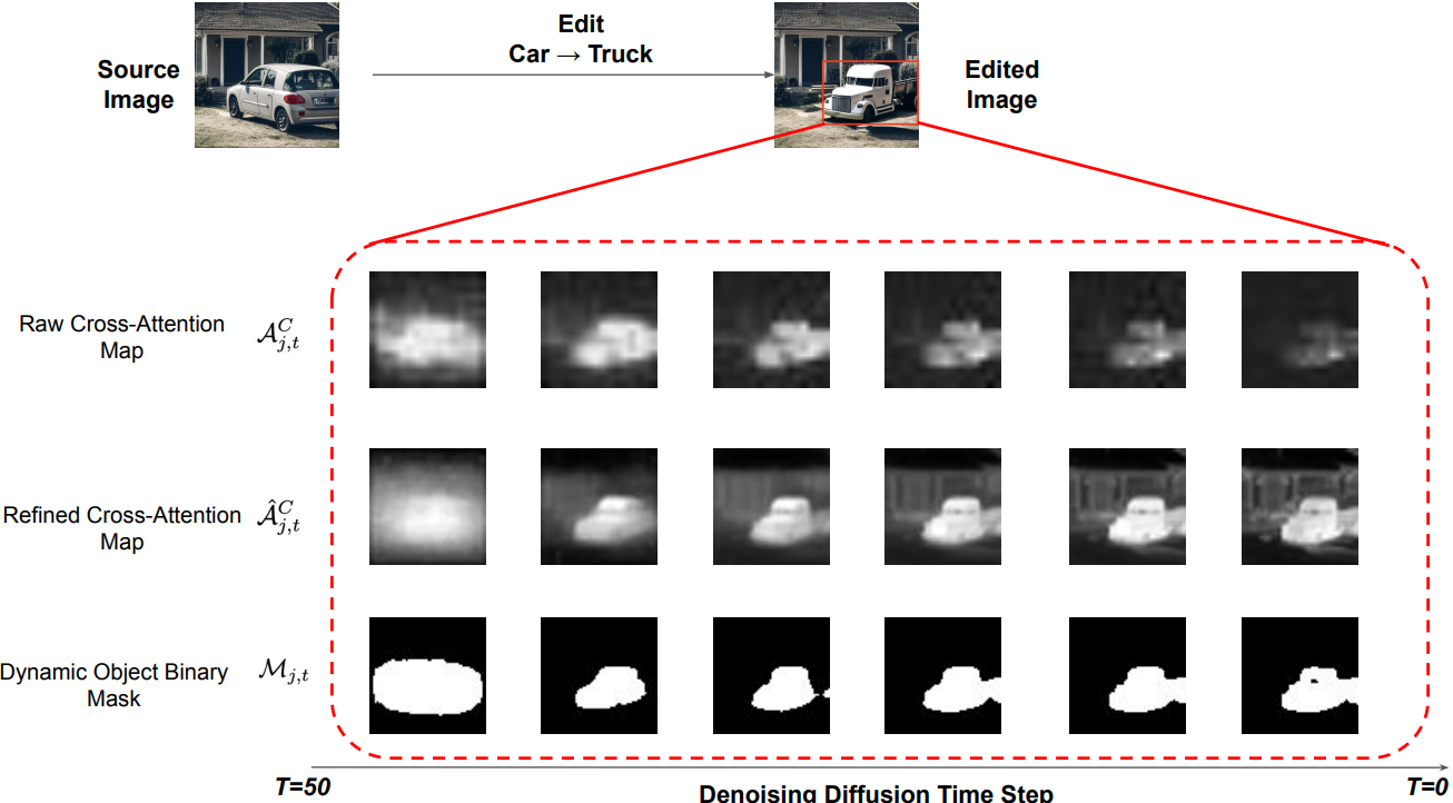 강화된 cross-attention map에 임계값을 적용하여 마스크를 얻을 수 있다.