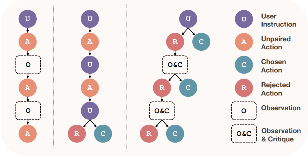 Correct action의 모든 node와 correct action으로 끝나는 모든 궤적이 SFT에 사용될 수 있다.