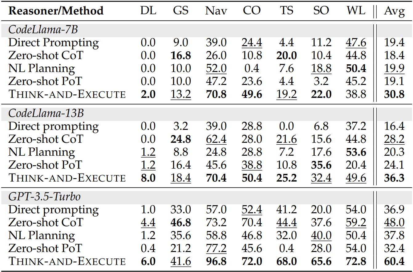 Task-level logic에 대한 의사 코드를 생성하고 코드 실행을 시뮬레이션하여 논리적으로 추론
