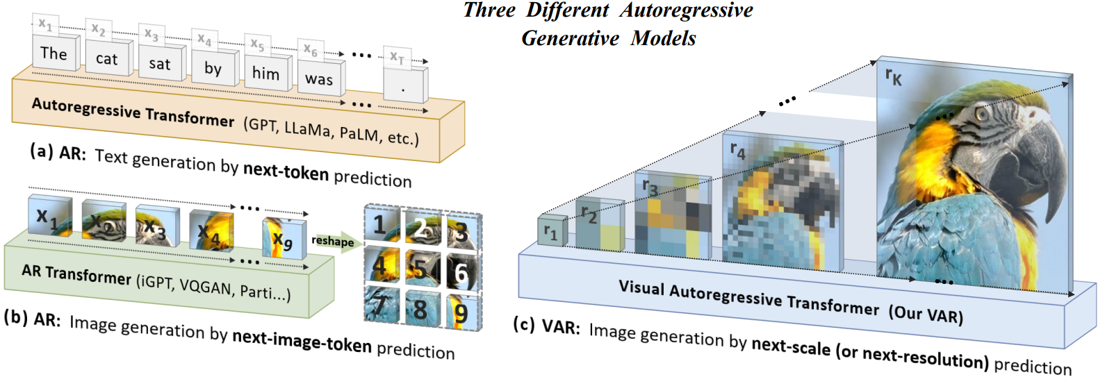 Next-token 예측을 next-scale 예측으로 재정의하는 차세대 패러다임인 Visual AutoRegressive (VAR) modeling 제안