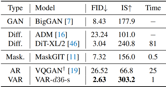 핵심은 VAR algorithm에 있으므로 LLM의 최신 기술(e.g. SwiGLU, RoPE, RMSNorm)은 사용하지 않았다.