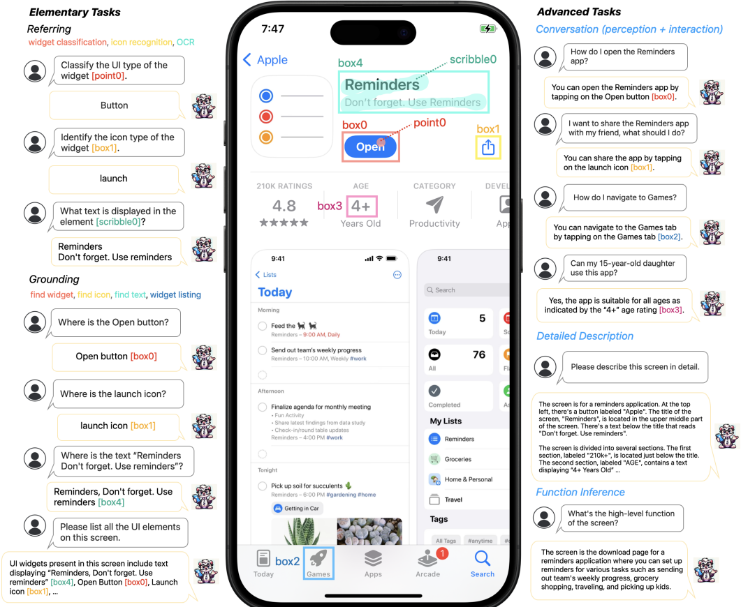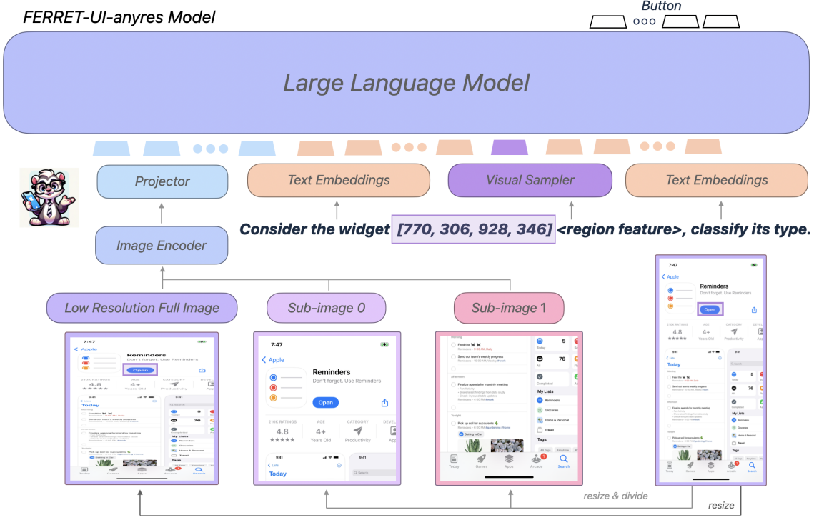 긴 종횡비를 가진 UI 화면을 이해하고 상호작용할 수 있는 Ferret-UI 제안