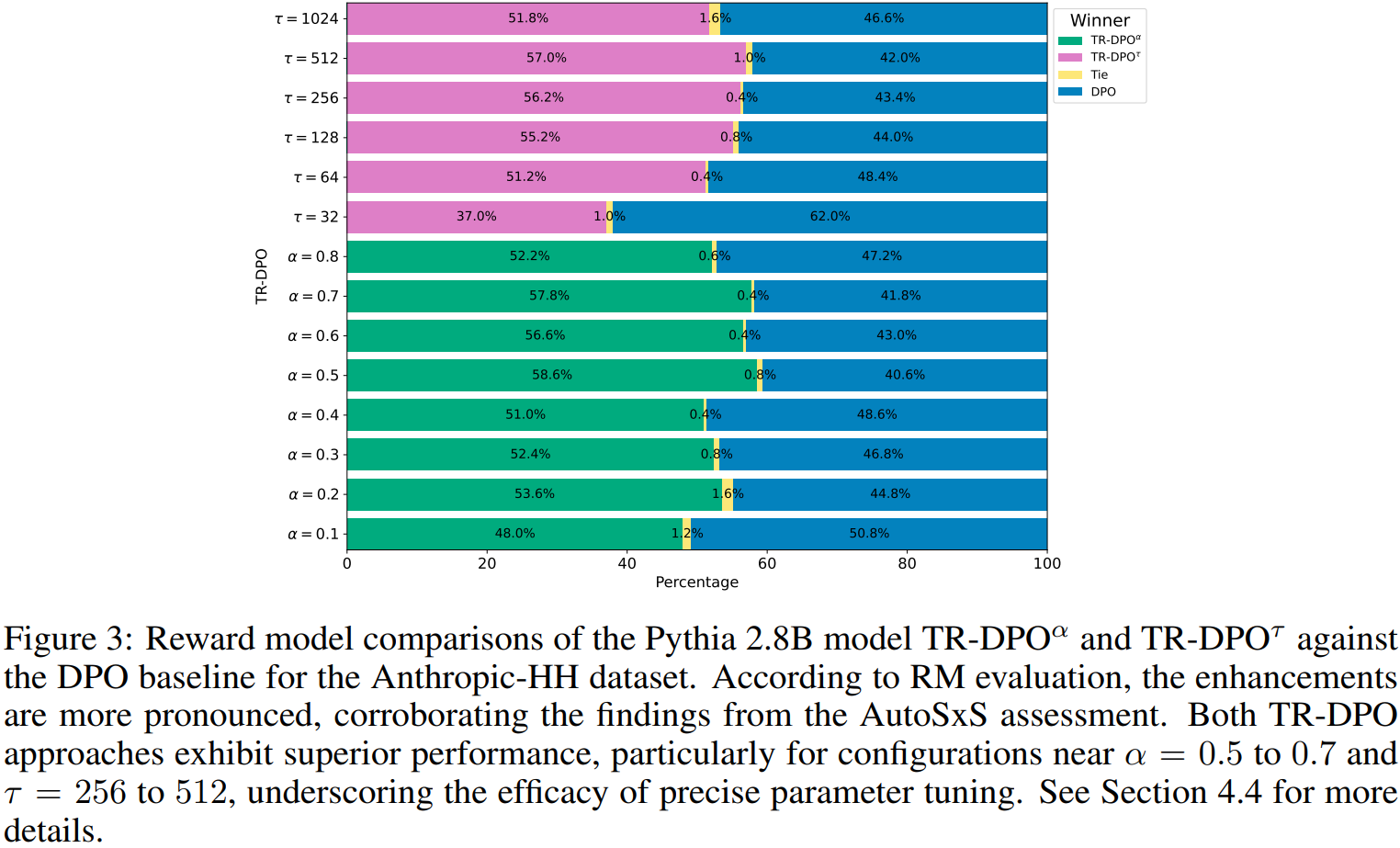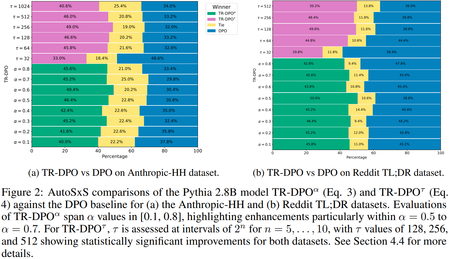 학습 중에 참조 정책을 업데이트하는 TR-DPO (Trust Region DPO) 제안