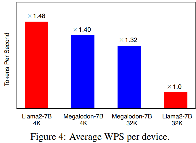 4K context 길이에서는 LLaMA2보다 느리지만 context 길이가 길수록 훨씬 더 효율적이다.